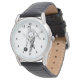 Eine Vintage, schwarz-weiße Lederstrahwache mit schwarzen Zahlen und eine digitale Retro-Abbildung eines männlichen Bowlers. Verfügbar in anderen Optionen. Besuchen Sie unseren Stil für weitere Uhren und andere Accessoires.