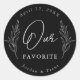 Diese personalisierten Schwarz-Weiß-Aufkleber eignen sich perfekt für Hochzeiten, Verlobungen, Brautparty oder Proben. Das Design besticht durch einfache, moderne Schriftart und einen Eukalyptusrand. Passen Sie sie mit Ihrem Namen und Veranstaltungsdatum an, um sie zu einem solchen zu machen. Fügen Sie sie zu Ihren Favoriten oder Desserts für eine extra persönliche Touch!
