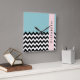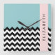 Schwarz und Weiß Zigzag, Zickzack, Blau, Ihr Name Quadratische Wanduhr