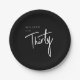 Maßgeschneiderte Teller und Schalen aus schwarzem Papier für 30 Geburtstagsfeiern. Passen Sie Ihren eigenen Namen an. Farben können im Designwerkzeug bearbeitet werden. Bitte nutzen Sie den unten stehenden Button für die Nachricht, um weitere Anpassungen und spezielle Anfragen zu erhalten. © Zoe Chapman Design