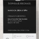 Mit unserer modernen Schwarz-Weiß-Hochzeitseinladung stärken Sie Ihre Hochzeit. Es verfügt über modernen Schriftart, glänzende Hochzeitsringe und eine abreißende RSVP-Karte, die Stil und Komfort verkörpert. Wichtige Merkmale: Moderne Ringe: Kleine Hochzeitsringe symbolisieren Ihre ewige Liebe. All-in-One: Es werden keine separaten RSVP-Karten benötigt, alles in einem. Premium Qualität: Luxuriöser Cardstock mit einem eleganten Design. Anpassbar: Personalisieren Sie Ihre Daten. Einfach zu senden: Einfache Montage und Versand. Machen Sie Ihre Hochzeit von Anfang bis Ende unvergesslich. Sehen Sie sich unsere Kollektion für eine Black & White Affair Themed Wedding an!