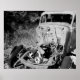 Schwarz-Weiß-Altschrott-Auto auf der Straßenseite Poster