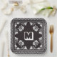 Schwarz-Weiß-Bandana-Design mit Monogramm Pappteller