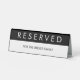Schwarz-Weiß, Farbblock Hochzeit reserviert Tisch Zelt Schild mit san Serif Schriftart. Personalisieren Sie es nach Bedarf.