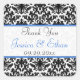 Schwarz-weiß Blue Damask 1,5" Gastgeschenk Hochzei Quadratischer Aufkleber