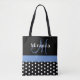 Schwarz-weiß Blue Monogram Script Polka Dots Tasche