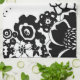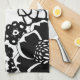 Schwarz-Weiß-Blumengarten Grafisches Muster Geschirrtuch