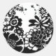 Schwarz-Weiß-Blumengarten Grafisches Muster Runder Aufkleber