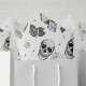 Dieses unterhaltsame, weibliche Gothic-Taschentuch wird von Nathalie Portet in schwarzer Tinte gezeichnet. Es zeichnet sich durch skurrile, kleine Schädel, blütige, rosa und cremefarbene Rose und Spinnennetze aus.