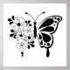 Schwarz-Weiß-Schmetterlingposter mit Blumen.