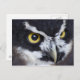 Postkarte mit einem nahen Foto einer schwarz-weißen Brilleneule. Drücken Sie die Schaltfläche "Anpassen" oben, um das Objekt zu personalisieren, indem Sie einen anderen Stil wählen, die Farbe und Größe ändern oder Ihren eigenen Text und Bilder hinzufügen.