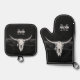 Dieser coole, rustikale Bullskull Country Western Cowboy Monogramm Topf Inhaber und Ofen Mitt hat ein schwarz-weiß Bauernhaus inspiriert gedruckt mit einer wilden westlichen Stil Kunst. Trendy, moderne Vintage Bauerntier. Bildrecht Marg Seregelyi Fotografie.