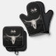 Schwarz-Weiß-Bullen-Monogramm des rustikalen Weste Ofenhandschuh & Topflappen-Set
