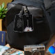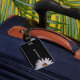 Fügen Sie Ihren Namen zu diesem Gepäckanhänger mit einem schönen weißen Tuch auf schwarzem Hintergrund hinzu
