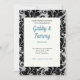 Black Damask Hochzeit Einladung mit schwarzer und Aquamariner Schrift.