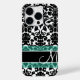 Ein klassisches, elegantes Design. Eine Vintage, schwarz-weiße Tapete für Ihr Gadget. Die feminine Gestaltung umfasst ein aquamarines grünes Band und einen Bereich für ein optionales Monogramm oder Initial.