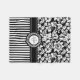 Schwarz-Weiß-Damast und Streifen-Monogramm Fleecedecke