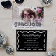 Diese trendige und stilvolle Graduiertenparty lädt mit einem Foto des Absolventen und Retro-Disco-Stil-Typografie zu einem aktuellen Werbespruch ein. Auf der Rückseite der Karte ist Platz, um alle Details zum Party hinzuzufügen. Die Vorderseite der Karte hat einen stylischen schwarzen Text, und die Rückseite der Karte ist fett schwarz und weiß mit einem schicken Rahmen.