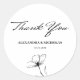 Klassischer Rundaufkleber mit Minimalistischer Schwarz-Weiß-Gastgeschenk Hochzeit. Diese einfache Moderne Schwarz-Weiß-Blumenhochzeit, die sich bei Ihnen für den Aufkleber bedankt, zeichnet sich durch eine schöne handgezeichnete Blume, elegante Typografie auf weißem Hintergrund aus. Matching Produkte in unserem Geschäft verfügbar.