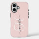 Erstellen Sie Ihren eigenen personalisierten Mädchennamen und mit Monogramm Telefongehäuse für ihr neues Handy. Der blassrosa, rosa, rosa und solide Farbhintergrund kann angepasst werden. Sie können auch das personalisierte Monogramm für die schwarz-weiße, elegante Kalligrafie anpassen.