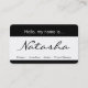 Schlicht, einfach, modern Schwarz & Weiß, zweiseitig, abgerundete Ecken, Hallo, mein Name ist, Nametag, Berufliche Visitenkarte ideal für eine weibliche Designer, Innendekorator, Kosmetologe, Friseur, Haarstylist, Projektmanager, Veranstaltungsplaner, Hochzeitsplanung, Public Relations Berater, Berufstherapeut, Zahnarzt, Psychologen, Psychiater altor oder Real Anwesen Agent, Anwalt, Anwalt, Anwalt, Anwalt, Paralegal, Chiropraktor, Cleaner, Veterinär, Dolmetscher & Übersetzer, Vertriebsmitarbeiter / Rep, Housekeeper, Sozialarbeiter und viele andere Fachleute. Text kann in Schriftart, Farbe, Größe und Position geändert werden, indem Sie auf den blauen Knopf "IT ANPASSEN" klicken. Bitte beachten Sie, dass lange Firmennamen eine Größe erfordern. Danke für Ihren Besuch!