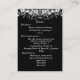 Eine lustige schwarz-weiße Hochzeitsdetails Gehäuse-Karte auf schwarzem Hintergrund und hellgrauem Text. Ein schwarz-weißer Blumenrand umschließt nur den oberen Teil dieser Karte. Dies ist Teil einer Suite mit passenden Produkten.
