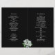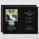 Hochzeitsprogramm für Schwarz-Weiß-Foto. Ein paar weiße Hydrangea-Blume schmücken die Innenseite und die Rückseite unter der Bildvorlage. Personalisieren Sie alle 4 Bereiche mit Zeremonie Text, danke Nachricht, oder was auch immer Sie wählen.