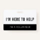 Schwarz & Weiß Freiwilliger hier, um Abzeichen Moderne Freiwillige Abzeichen in fett Schriftart und hellen Farben, gelb und schwarz zu helfen. Ideal für Crew, Personal, Praktikant, Gruppen und Veranstaltungen.