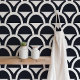 Verbessern Sie Ihren Platz mit unserem schwarz-weiß-geometrischen, skalierten Wallpaper. Mit einem dramatischen schwarzen Hintergrund und einem knusprigen, weißen Skallopiermuster verleiht dieses Design jedem Zimmer eine kühne, moderne Ästhetik. Die sauberen geometrischen Linien sorgen für ein ausgeklügeltes und zeitloses Ambiente, das sich perfekt in verschiedene Stilrichtungen einfügt. Ideal für Mieter, bietet diese herausnehmbare Tapete eine einfache Möglichkeit, Ihr Interieur ohne langfristiges Engagement zu verändern.