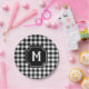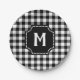 Schwarz-Weiß-Gingham Buffalo-Karo Monogramm Pappteller