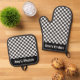 Schwarz-weiß Gingham Karos Design Ofenhandschuh & Topflappen-Set