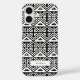 Unser moderner Blick auf das Stammesmotiv weist ein Mod-Schwarz-Weiß-Muster aus sich wiederholenden Dreiecken und Chevronen auf. Fügen Sie einen Namen, ein Monogramm oder ein beliebiges Sprichwort oder eine Phrase mit dem Personalisierungsfeld hinzu, oder löschen Sie das Beispieltext und die weiße Box für einen sauberen Look.