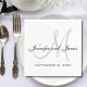 Elegante Minimale Schwarz Weiß Grau Monogramm Skript Hochzeitspapierservietten für Hochzeiten, Babypartys, Probeessen und Hochzeitstage. Design von Elke Clarke ©. Verfügbar bei www/zazzle.com/monogramgallery*. Klassische Skript-Schriftarten. Anpassen mit Ihrem Braut- und Bräutigamnamen, Hochzeitsdatum und Hochzeitsfarben.