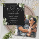 Schwarz-weiß Greenery Blumenplatz Hochzeit des Fot Einladung