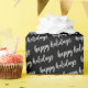Das moderne Geschenkpackungs-Set ist schwarz mit weißem Schriftzeichen "Happy Holidays" als diagonales Muster.