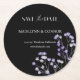 Bläserschwarz und Weiß Hochzeit Sichern Sie den Date Round Paper Untersetzer Ein modernes Save the Date in einem einzigartigen Untersetzer-Format auf einem klassischen schwarzen Hintergrund. "Save the Date..." erscheint oben auf Ihrem Untersetzer in weißem Block und Schrift, mit Ihrem Hochzeitstag und Hochzeitsort in der Mitte. Benutzen Sie die zusätzliche Textzeile, um Ihre Hochzeitswebsite oder weitere Details zu teilen. Ändern Sie die Farbe des Schriftartes nach Ihren Wünschen.