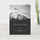 Schwarz-Weiß Hochzeit unter den Bergen. Landschaftsfoto eines schneebedeckten Berges mit Dunkelheit unten und weißer bewölkter Himmel oben. Die Namen des Ehepaares sind in schwarzem Schriftart über dem Berg am Himmel und alle Details sind in weißem Schriftart unter dem Berg. Vollständig anpassbare und personalisierbare Hochzeitsprodukte.
