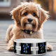 Schwarz-Weiß-Hundeschüssel mit Bluebells & Text Napf