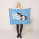 Diese hübsche, knusprige Decke mit einem schwarz-weißen Husky vor einem Hintergrund von Schneeflocken vor blauem Hintergrund.