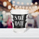 Schwarz-Weiß-Kalligrafie-Hochzeit speichern Sie da Schnapsglas