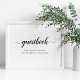 Das einfache und schicke Schild lädt die Hochzeitsgäste ein, Ihr Gästebuch zu unterschreiben. Personalisieren Sie mit zwei Textzeilen in knackiger schwarzer Kalligrafie-Schrift und traditioneller Serifenschrift (mit "Gästebuch; bitte verlass Ihre Wünsche für den neuen Mr. und Mrs. [Name]").