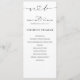 Modernes Schwarz-Weiß Hochzeitsprogramm mit eleganter Kalligraphie und minimalistischer Gestaltung. Dieses elegante und raffinierte Design Kontur die Reihenfolge der Zeremonie und sorgt dafür, dass die Gäste mit Leichtigkeit folgen können. Dieses Programm ist perfekt für zeitgenössische, formelle oder rustikale Hochzeiten geeignet und fügt jeder Zeremonie eine stilvolle Touch hinzu.