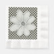 Die gepflegte, kühne Linie dieser Serviette, entworfen von Leslie Sigal Javorek, ist die perfekte Wahl für moderne und neutrale städtische Dekorationsstile in Ihrem Zuhause oder Büro. Das große, in der Mitte weiße und graue Farbtupfer (in einer Weise bemalt, um Diamanten vorzuschlagen), das ein breites Band aus schwarz-weißem Marmor-Schachbrett durchkreuzt, alle zentriert und Set gegen ein solides schwarzes Feld.