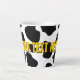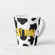 Schwarz-Weiß-Kuh-Flecken Latte Tasse Geschenk für Kuhliebhaber. Personalisierte Kaffee-Tasse mit Ihrem Namen oder lustigen Text. Coole Geschenkidee für Frauen und Kinder. Schwarz-Weiß-Farmhaut-Druck mit gelben Buchstaben.