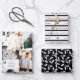 Wrap deine Geschenke mit Stil in dieser Saison mit diesen drei, farbkoordinierten Blättern. Eines zeigt fünf Ihrer Lieblingsfotos, eine kurze und süße Botschaft und Ihren Namen; das zweite ist ein koordinierendes Stripmuster mit längerem Nachrichtentext; das dritte ist ein fröhliches Muster moderner weißer Hully, das auf grafischem Schwarz strahlt.
