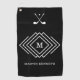 Elegantes, schwarz-weißes, monogramm Golfhandtuch. Designmerkmale von trendigen Initialen Monogramm in Blockbuchstaben und Ihr Name auf dem Monogramm aufgedruckt in modernem elegantem Schriftart mit goldenem Symbol auf dem Handtuch. Perfektes Geschenk für Vater, Onkel, Ehemann, Bruder, Großvater etc.