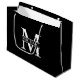 Personalisierte Monogramm- und Namensgeschenktasche mit personalisiertem Monogramm im klassischen Serifenstil mit Namensbox in der Mitte des Monogramms auf schwarzem Hintergrund. Perfekte Geschenktasche für Urlaub, Hochzeit und alle besondere Anlässe.