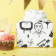 Geburtstag oder Jahrestag 50 themed Geschenkpackung mit Grafiken von Vinyl-Alben, musikalische Noten, ein Paar tanzen, Milchshakes, Laufwerk in Zeichen, TV Hotdogs und andere lustige Retro-Bilder.