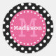 Schwarz-weiß-Pink-Polka-Dots-Monogramm Runder Aufkleber