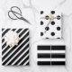 Set aus drei schwarz-weißen Geschenkpapier-Blättern. Schwarz-Weiß-Papierumhüllung, weißes und schwarzes Polka-Dotpapier, schwarz-weiß gestrichenes Papier und schwarz-weißes, horizontales Streifenpapier.